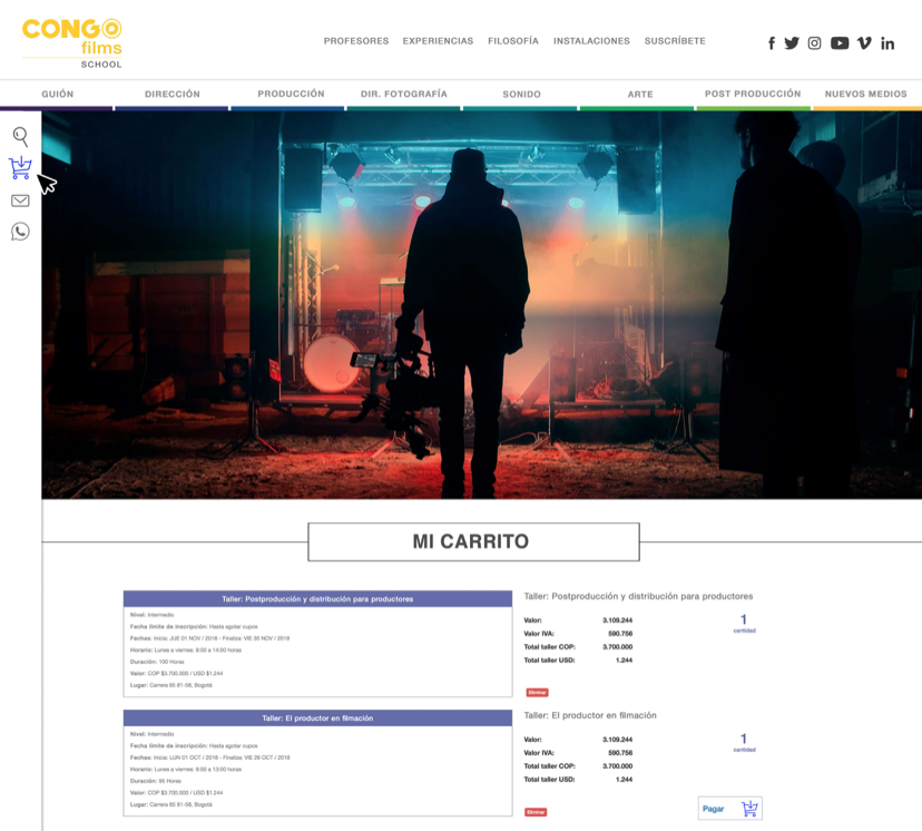 Web design for Congo Films School, audiovisual Colombian film school